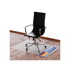 The floor protection mat is transparent and has a size of 120 x 100 cm.