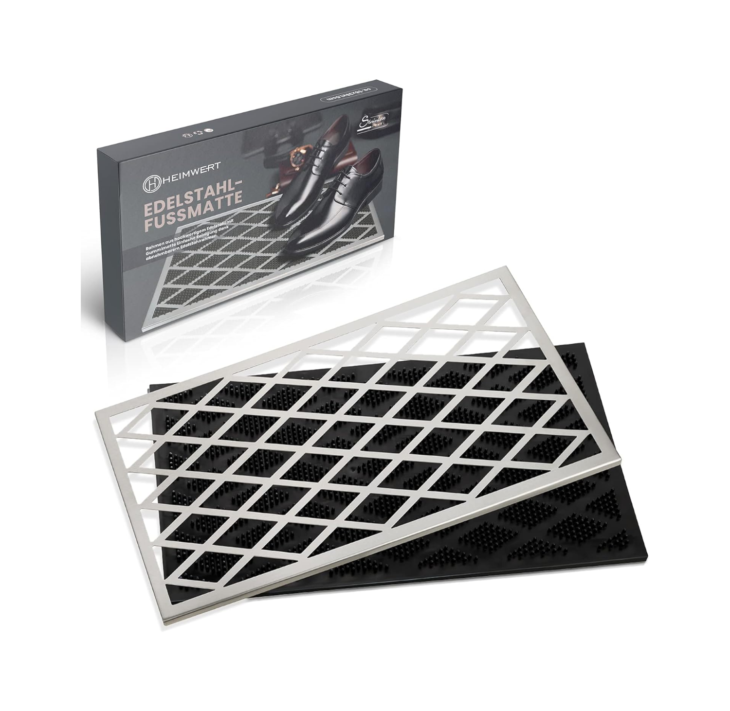 The product, Stainless Steel Doormat, is designed to keep your entryway clean by trapping dirt from the soles inside.