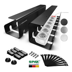 The cables are placed in the tray and can be laid along the wall or at the desk without them strong>messylook. The cable duct also provides protection against dust, dirt and damage. The cable duct is attached to the using the supplied screws strong>desired locationscrewed.