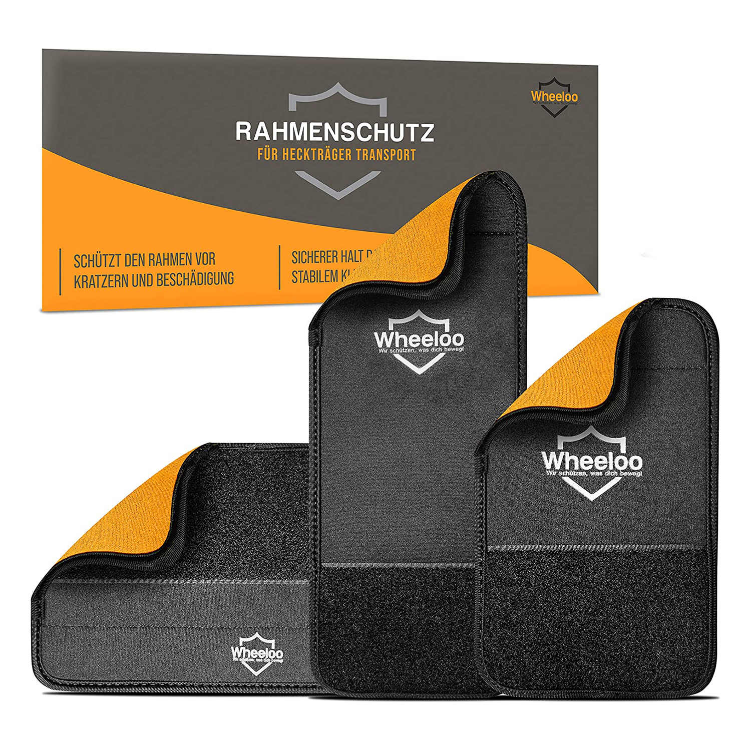 The Wheeloo brand bicycle transport protection contains three protective neoprene covers. These are intended to make it easier to transport bicycles safely on all types of luggage racks.