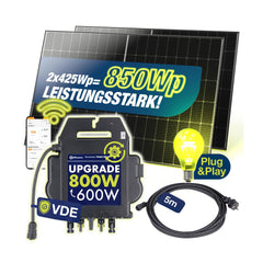 Das Produkt ist eine Plug&Play Mini-PV Anlage, welche aus zwei Modulen, einem APsystems Wechselrichter und einem 5 m Anschlusskabel beinhaltet.